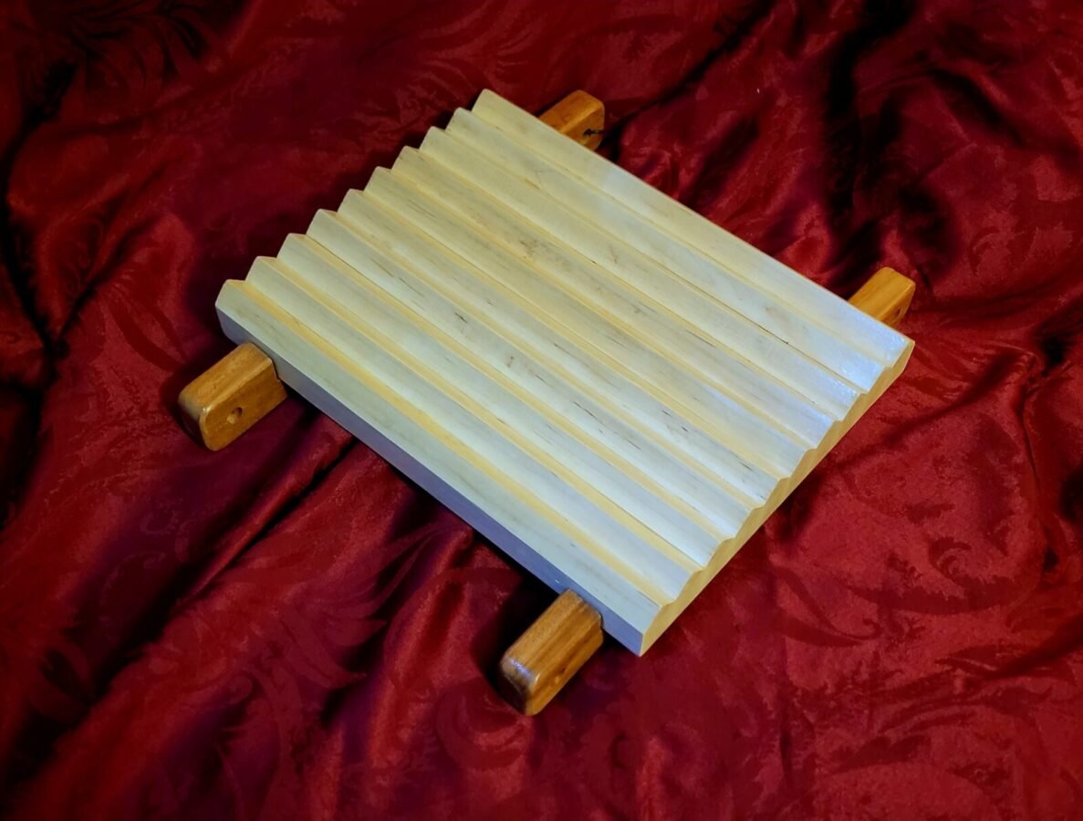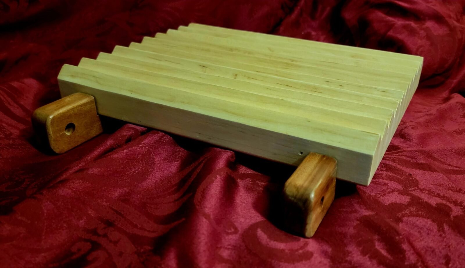 This a hand-crafted Japanese-inspired Ishidaki Kneeling Board. Stock boards are made of hard maple, Board shown has African Mahogany runners and is $250.